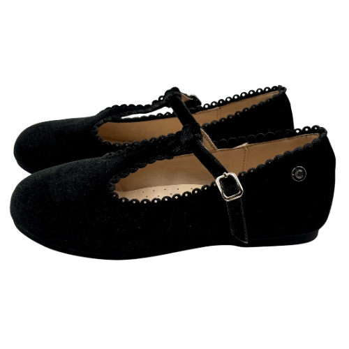 Black Velvet Scallop T-strap